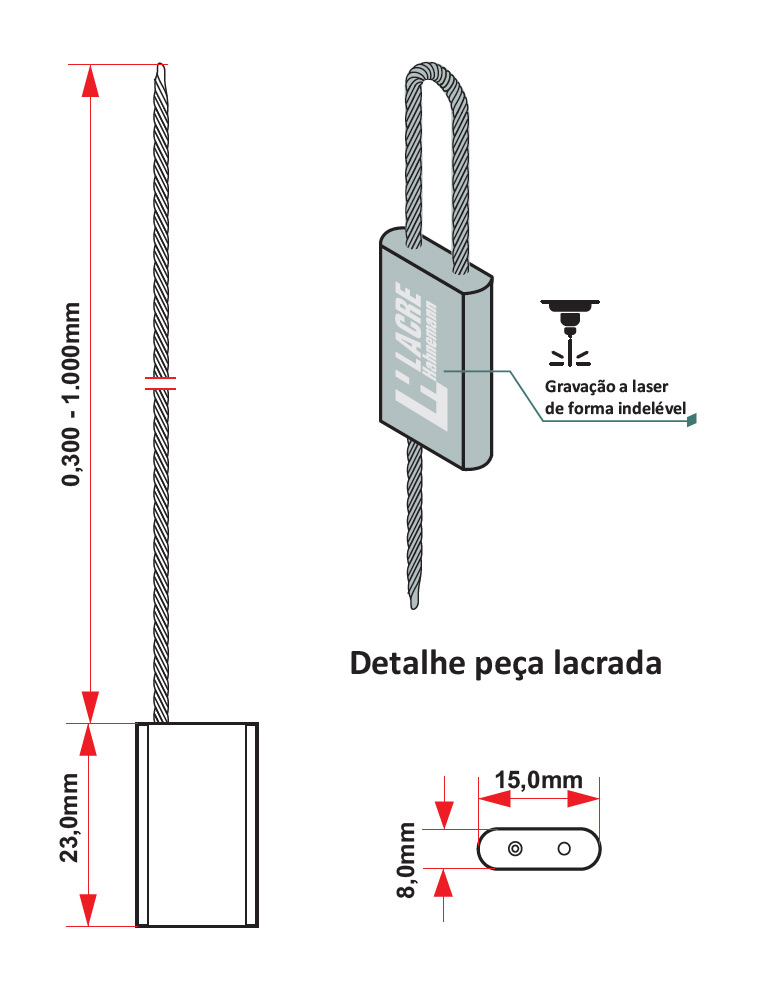 • Mecanismo de trava de segurança interno anti-retorno do cabo de aço;